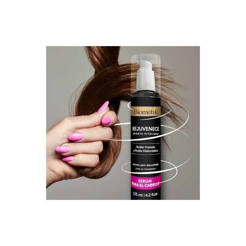 🌟 ⭐ Biometik Rejuvenece, Serum para el Cabello, Mejora la Elasticidad, Fortalece la Fibra Capilar, Antioxidante, con Roble Francés y Ácido Hialuronico, 125 ml ⭐ 🌟