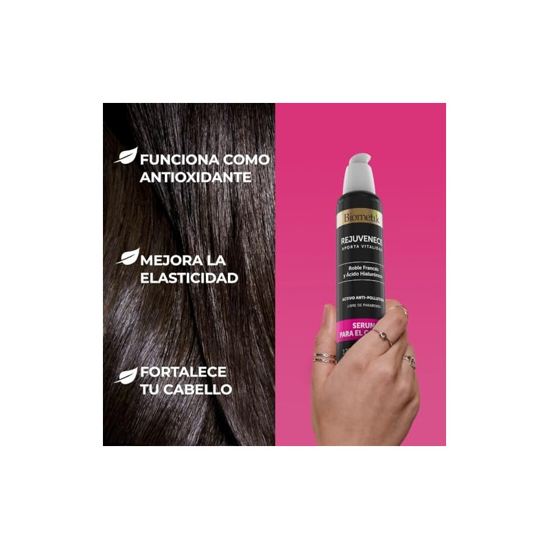 Biometik Rejuvenece, Serum para el Cabello, Mejora la Elasticidad, Fortalece la Fibra Capilar, Antioxidante, con Roble Francs y cido Hialuronico, 125