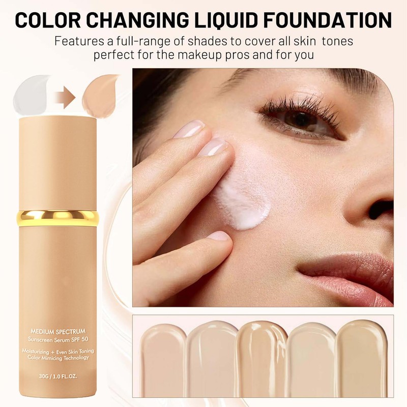 - FOUNDATION 4 IN 1: Our liquid foundation serves as a foundation, sunscreen, moisturizer, and skin tone corrector all in one. With long-lasting, waterproof coverage that lasts a full 24 hours. Its multifunctional design simplifies your skincare and makeup routine, saving you time and effort while delivering comprehensive benefits to your skin