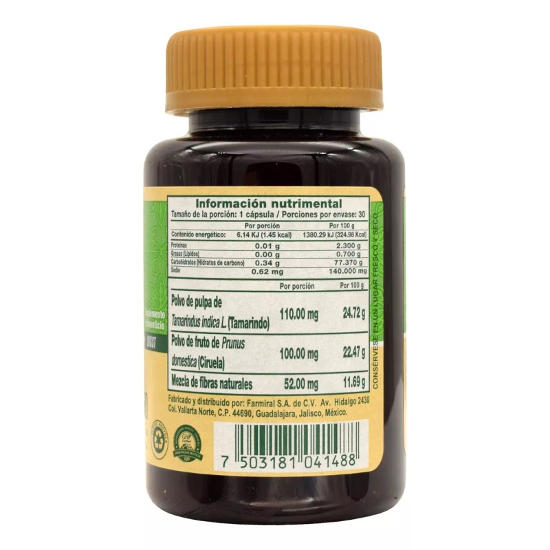 - Ingredientes: MezcladeFibrasNaturales, PolvoFrutaPrunus, PolvoTamarindus