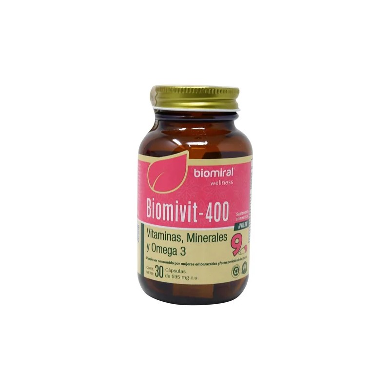 Nombre: BIOMIVIT 400 30 CAPSULAS 595 MG VITAMINAS Y MINERALES Y OMEGA 3 BIOMIRAL