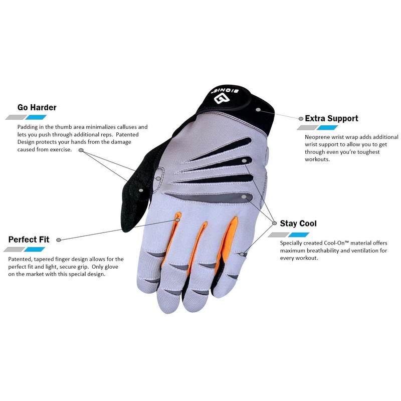 Bionic Men's Cross-Training Full Finger Gloves, Gray/Orange, X-Large