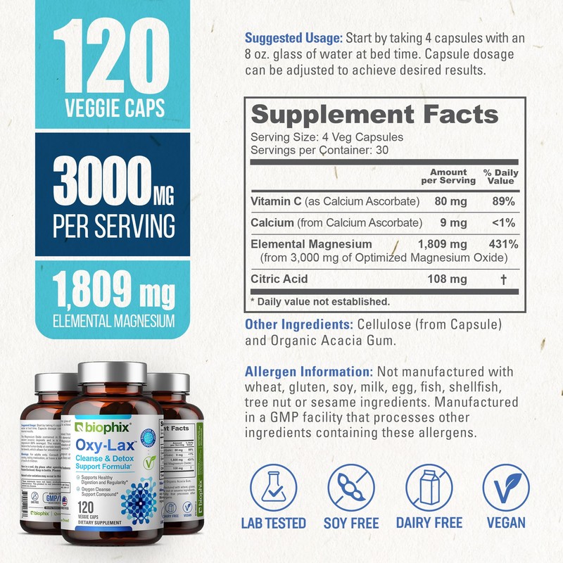 biophix biophix Oxy-Lax 750 mg 120 Vcaps - Natural Laxatives for Occasional Constipation - Magnesium Laxative with Oxygenated Magnesium - Oxygen-Based Colon Cleanse - Supports Digestive Tract Regularity