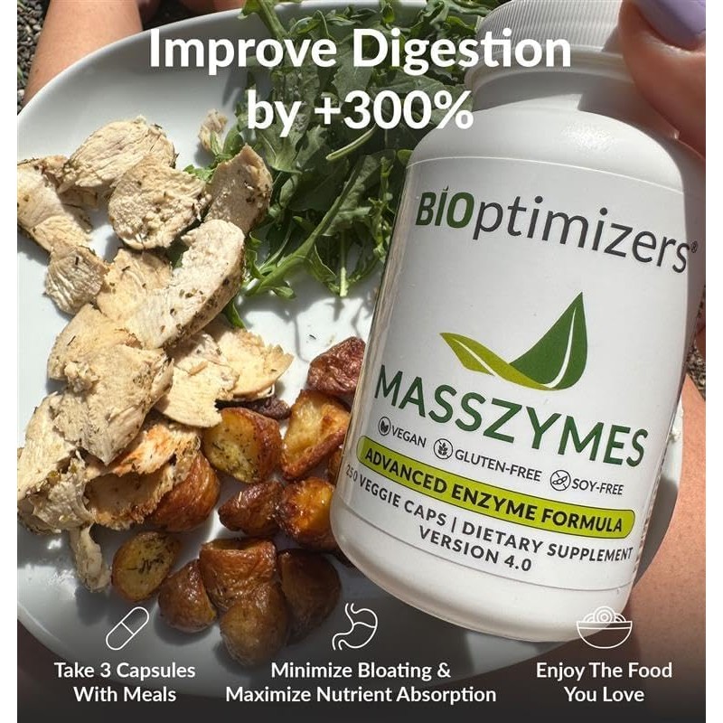 BiOptimizers MassZymes - Complete Digestive Enzymes Supplement for Gut Health...