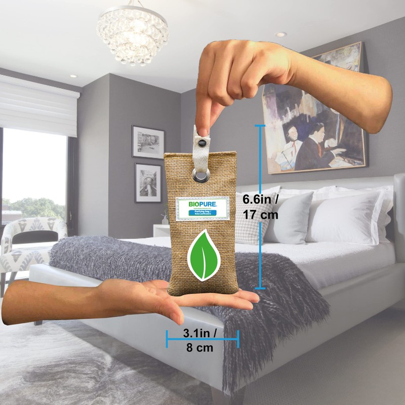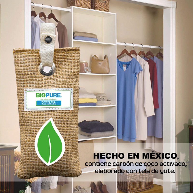 Biopure - Kit bolsas purificadoras - Carbón activado 100% biodegradable - Coco - Yute - Remueve malos olores, humedad, moho y alérgenos - Hecho en México - (225 gr)