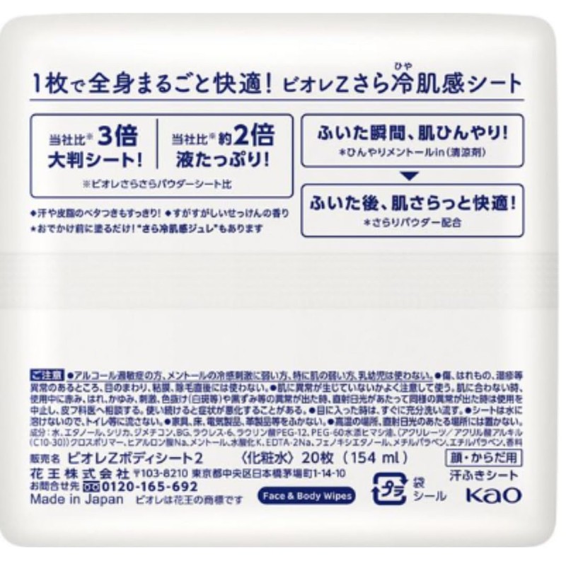 • Biore Z Smooth Cool Skin Sheet for Refreshing Soap Scent, 3 bags (20 sheets per bag)