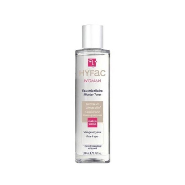 Hyfac Woman Micellar Toner 200ml is ideal to cleanse and remove the make-up of face and eyes. Its formula cleanses gently, eliminating even the waterproof make-up. The skin is soothed and soft, the radiance of the complexion is awakened thanks to the extracts of Camellia Sinensis.