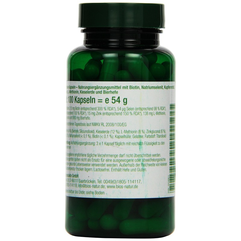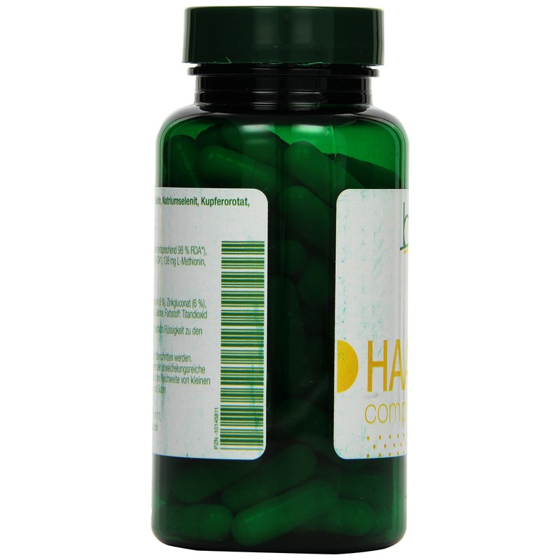 - Nahrungsergänzungsmittel mit Biotin, Natriumselenit, Kupferorotat, Zinkgluconat, L-Methionin, Kieselerde und Bierhefe.
