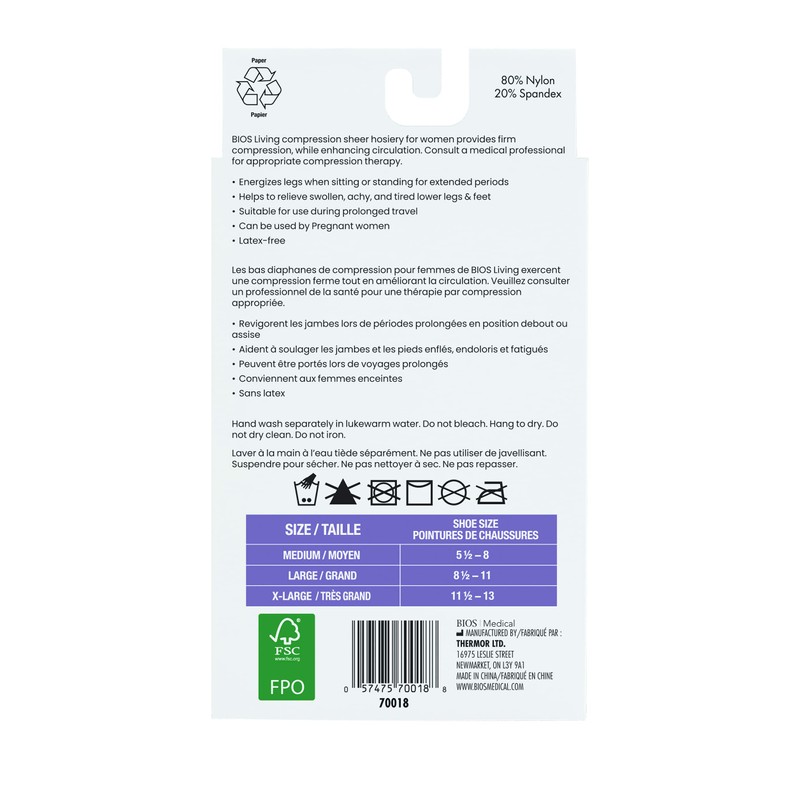 BIOS Living Women Compression Trouser Socks Sheer Beige XL 20-30mmHg
