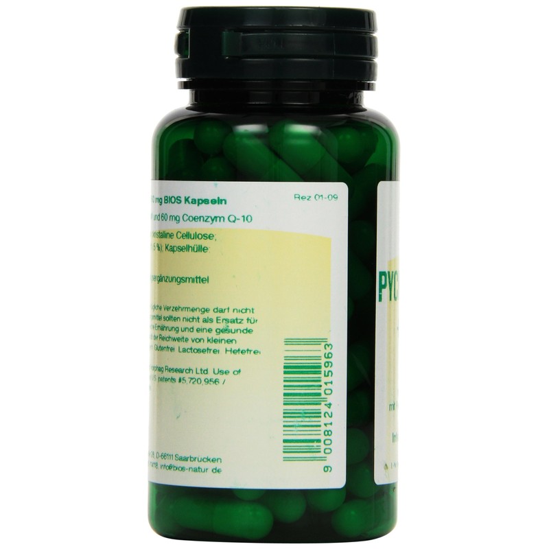 - Pycnogenol + Q-10 Bios capsules contain 30 mg of pycnogenol and 60 mg of coenzyme Q-10 in a hard gelatin capsule.