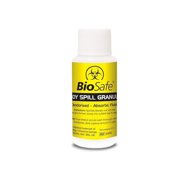 Biosafe absorbent granules can be used to safely highlight and disinfect the affected areas.