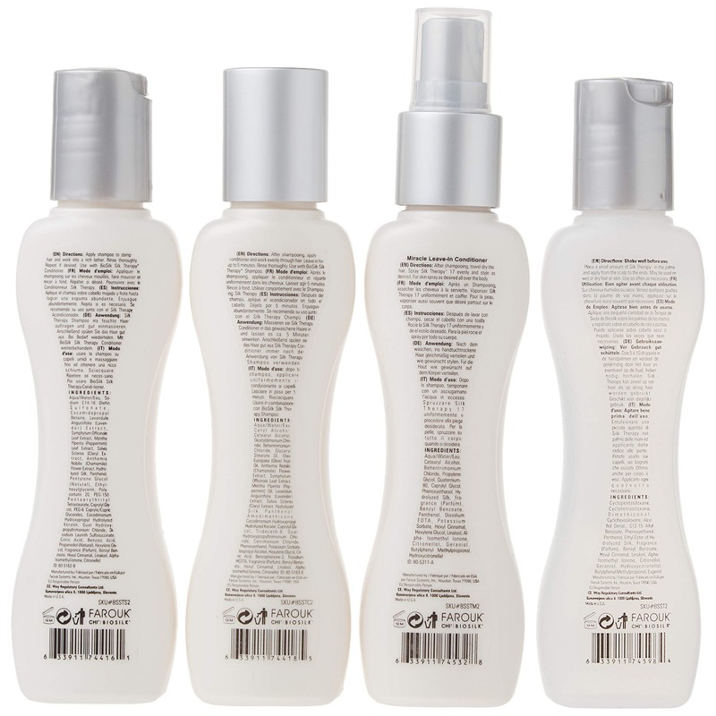- Contains BioSilk Silk Therapy Original, BioSilk Silk Therapy Miracle, BioSilk Silk Therapy Shampoo, and BioSilk Silk Therapy Conditioner.