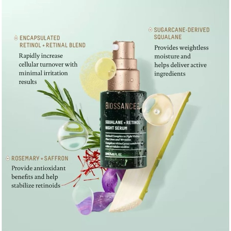 Biossance Squalane + Retinol Night Serum 30ml - Anti-Aging, Hydrating, Firming