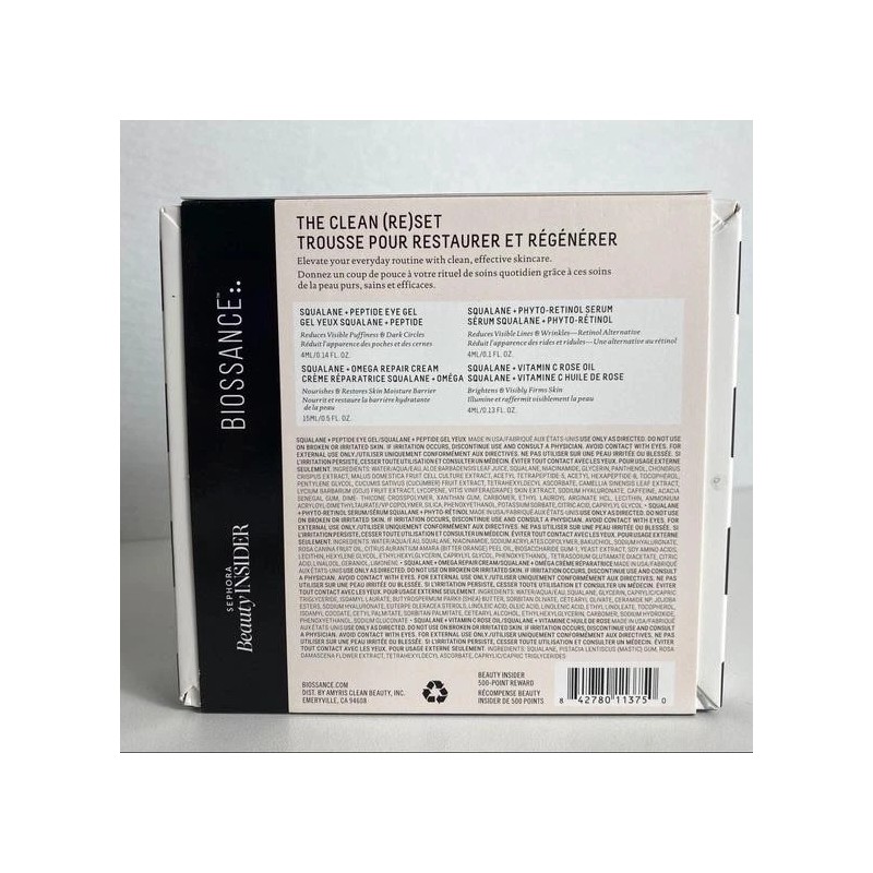 Biossance The Clean (Re)Set Skincare Set Squalane Peptide Retinol Eye Cream Seru