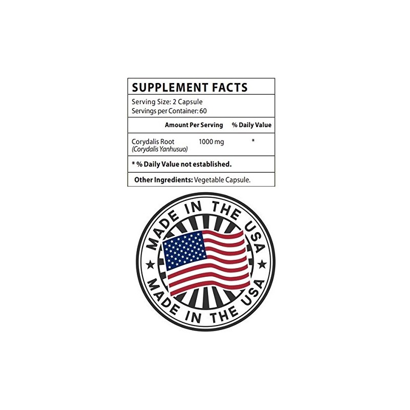 - Corydalis Yan hu suo root 1000 mg serving, serving size 2 capsules