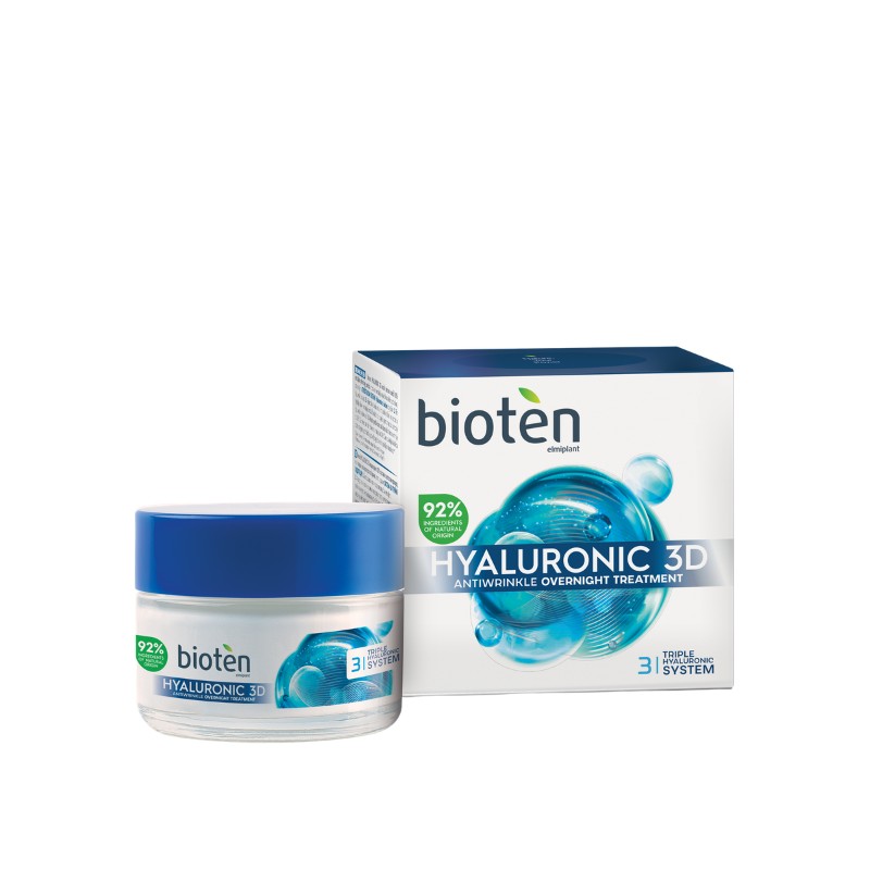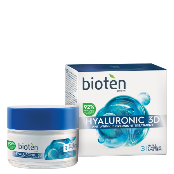 Bioten Hyaluronic 3D Night Cream is an anti-wrinkle night cream that offers intensive hydration and improvement of the skin. Based on the triple hyaluronic acid system (Hyaluronic booster):
