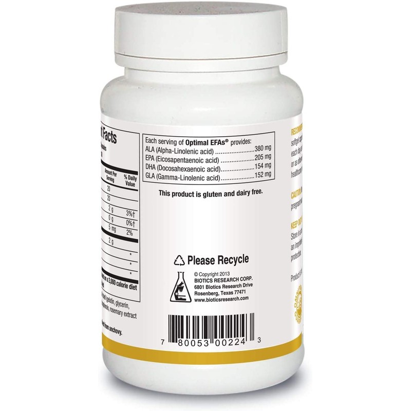 Biotics Research Optimal EFAs©- Proprietary Blend of Fish, Flaxseed and Borage Oils. Balance of Omega-3, 6 and 9 Fatty Acids.Supports Immune, Inflammatory Responses,Cardiovascular Neurological Health
