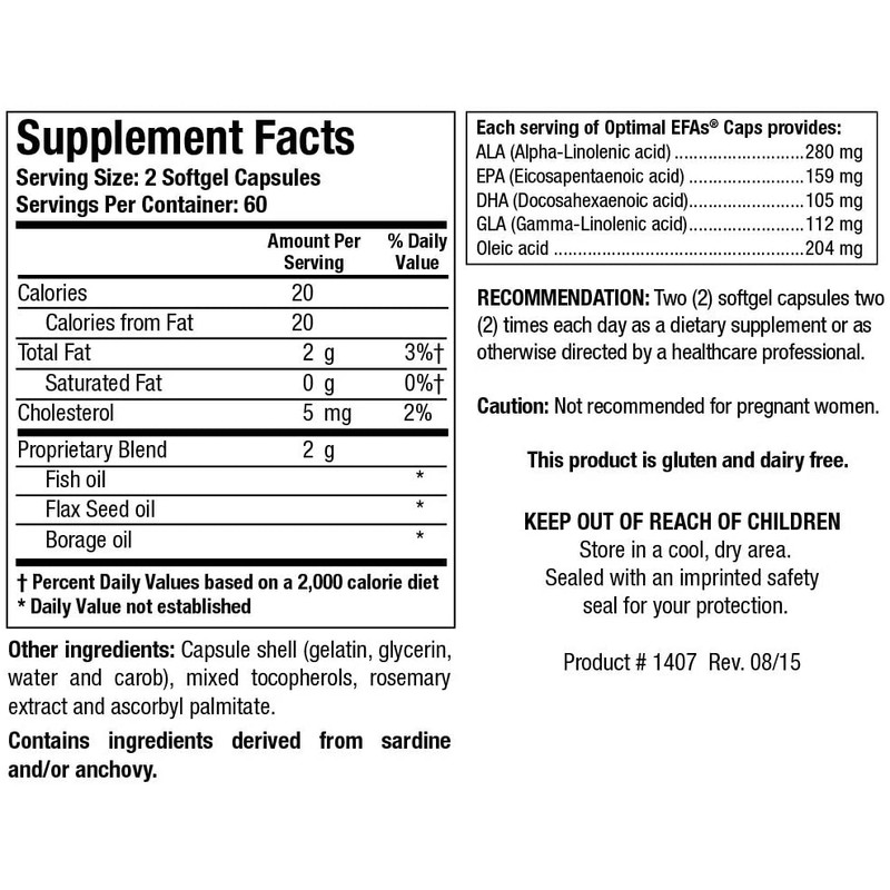 - GOOD FOR YOUR HEART: Mounting research links fish consumption to cardiovascular health, due to the benefits found in omega-3 essential fatty acids (EFAs). One Optimal EFAs capsule delivers a potent 1 gram dose of the EFAs EPA/DHA, giving you a concentrated form of these heart-healthy nutrients.