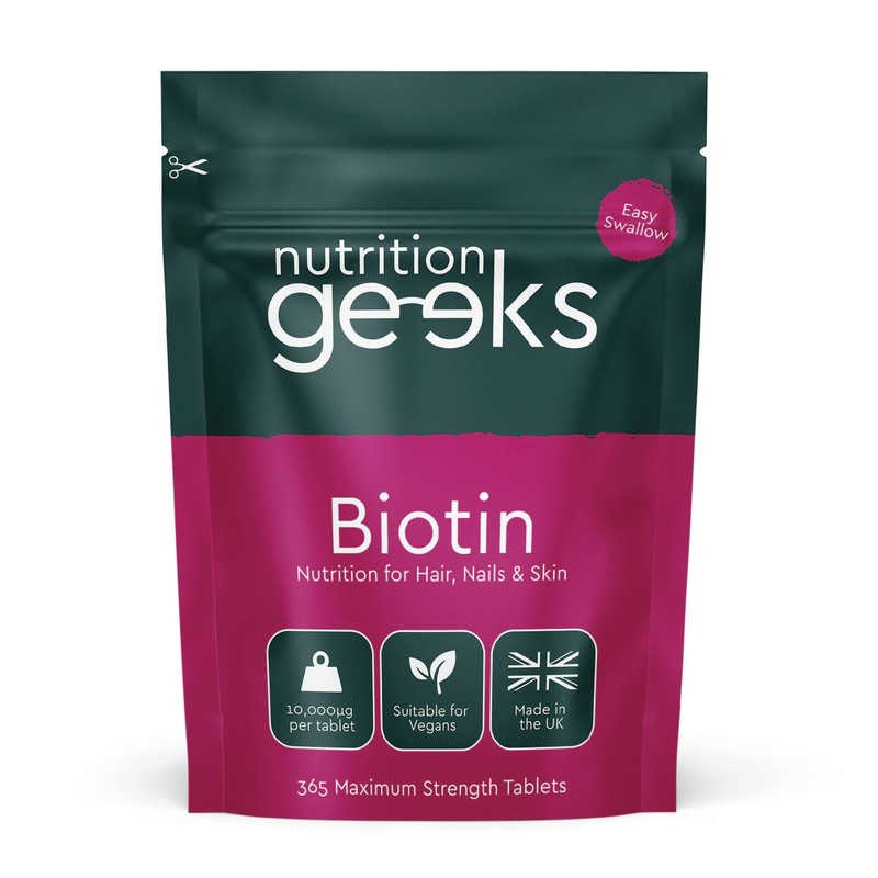 - 🧐 1 Year Supply of Biotin Made by British PhD Geeks🧐 Each pouch contains 365 easy to swallow 10000mcg biotin tablets that are scientifically proven to support you with hair growth, strength & thickness; nail growth and healthy, glowing skin.