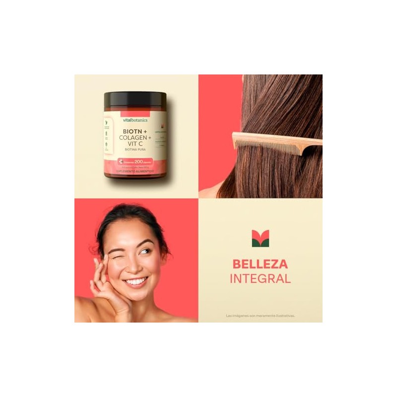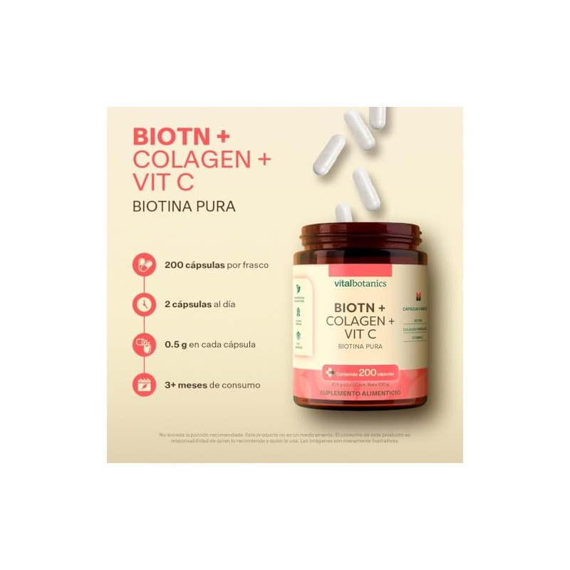 🌟 ⭐ Biotina Pura + Colageno Hidrolizado con 200 capsulas [6 meses]. VitalBotanics. Suplemento Multivitaminico Con Biotina Colageno y Vitamina C para Hombre y Mujer. Vitaminas. ⭐ 🌟