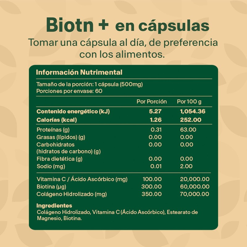 Biotina Pura + Colageno Hidrolizado con 60 capsulas. VitalBotanics. Suplemento Multivitaminico Con Biotina Colageno y Vitamina C para Hombre y Mujer. Vitaminas.