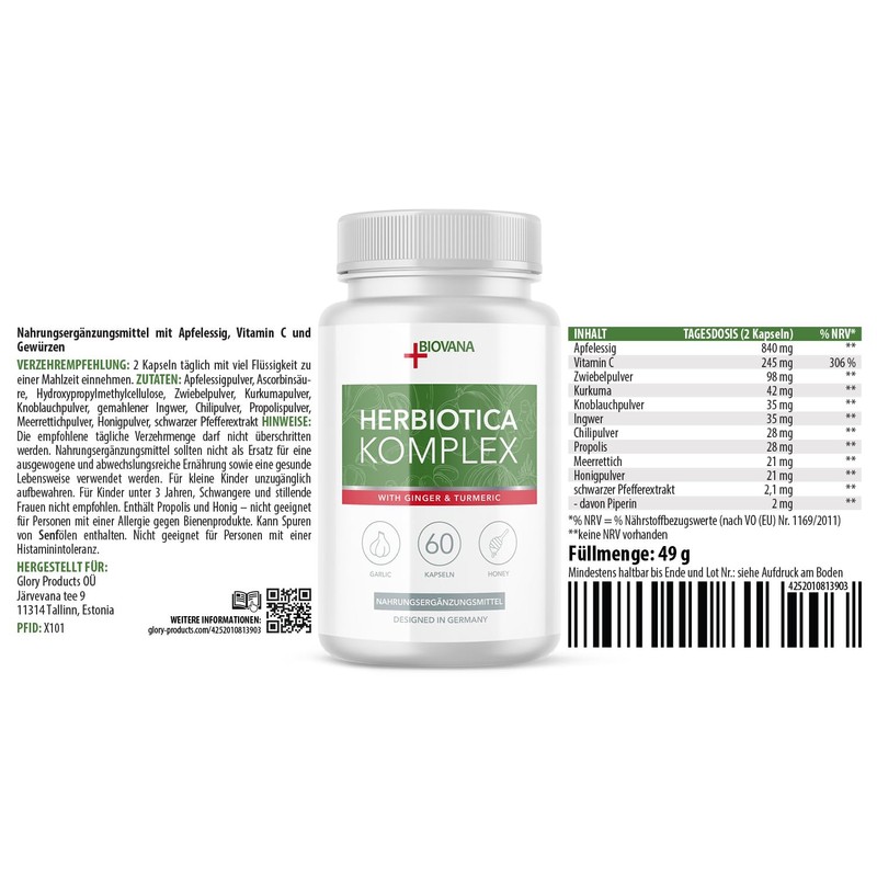 Biovana Herbiotica Kapseln | Ideal begleitend für dein Ziel | Einfache Anwendung | Inhalt 90 Kapseln | 1x