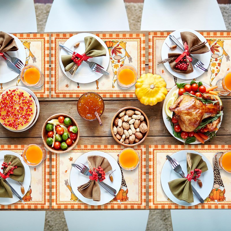 - Placemats Set of 4: Each place mat measures 13x19 inch(33x48cm), can be casually fold or roll up to store away. This fall table mats are large enough for any pot and bowl while protect your table.