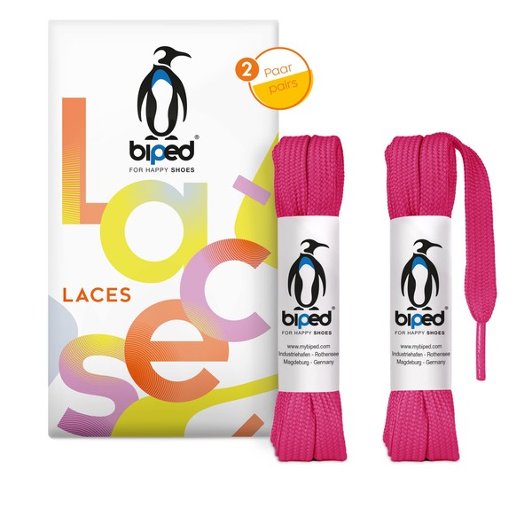 biped Laces 2 Pairs of Flat Shoelaces Made of Polyester, 10 mm Wide, Shoe Laces for Trainers and Sports Shoes, Tear-Resistant and Washable z2913 (#13 Pink, 120 cm)