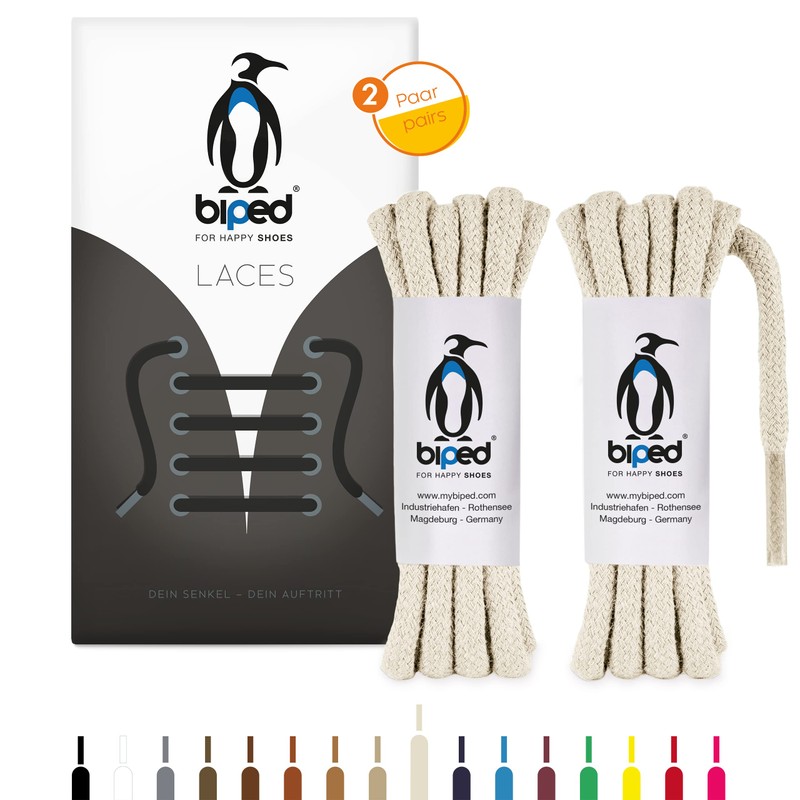 biped Laces 2 Pairs of Round Cotton Shoelaces Diameter 5 mm Extra Thick - Tear-Resistant Quality Shoe Laces for Leather Shoes, Boots, Boots and Sports Shoes - Made in EU z2902 (Natural, 120 cm)