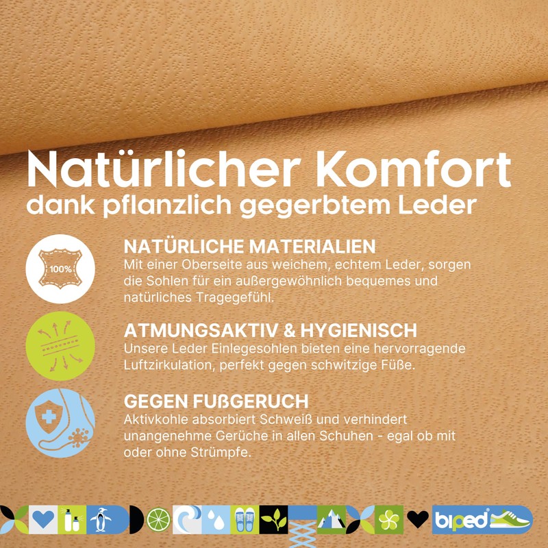 Biped Z1724 leather insoles with activated carbon, 3 pairs. - Brown - 36-37