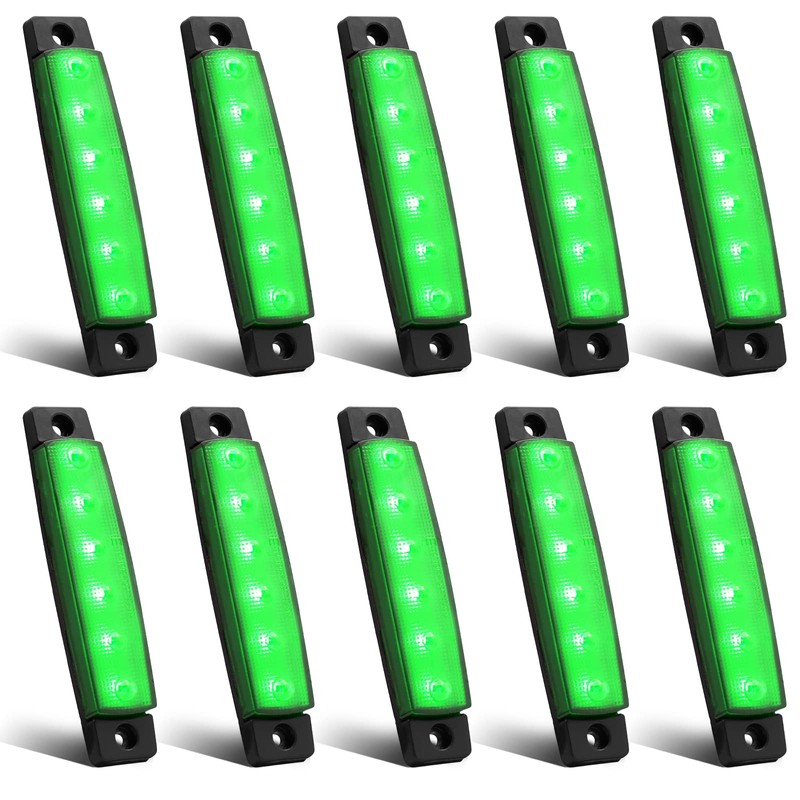 Biqing 10pcs 24V Side Marker Lights,6SMD Trailer Truck Lorry Caravan Indicator Lights Front Rear Side Light Position Lamps Green Marker Lights IP65 3.8" Warning Light