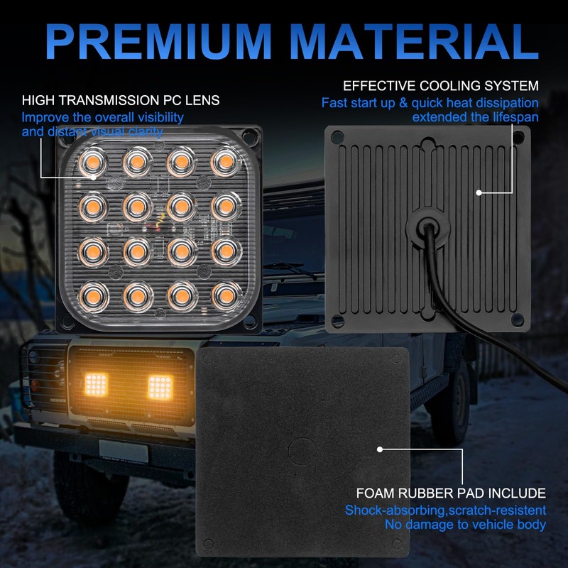 - 【Package included】2x 16LED Amber Car Strobe Flash Lights, 2 X Protection Pads ,some Screws