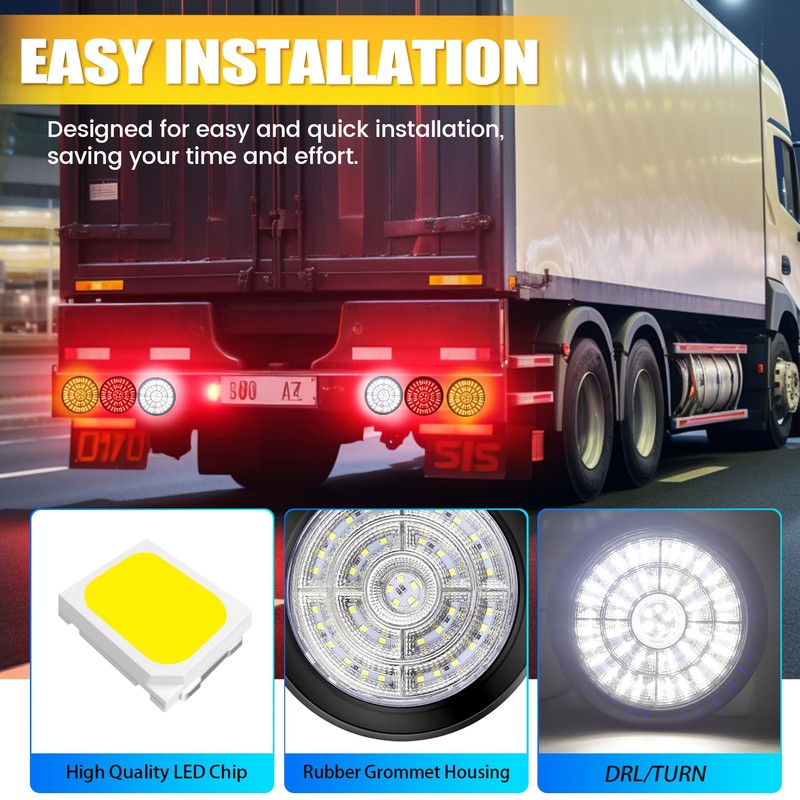 - ⚡【Package Include】2PCS 4 inch round trailer tail lights.