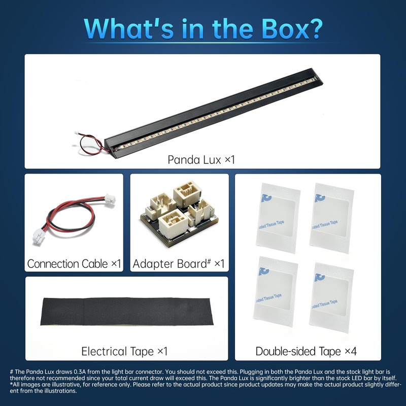 - 🐼【LED Upgrade Kit for Bambu Printers】 Panda Lux LED light bar is compatible with Bambu Lab P1S P1P X1C X1E 3D Printers. It is powered by the original light bar connector and can be controlled by the original screen. And it won’t interfere with the lidar function.