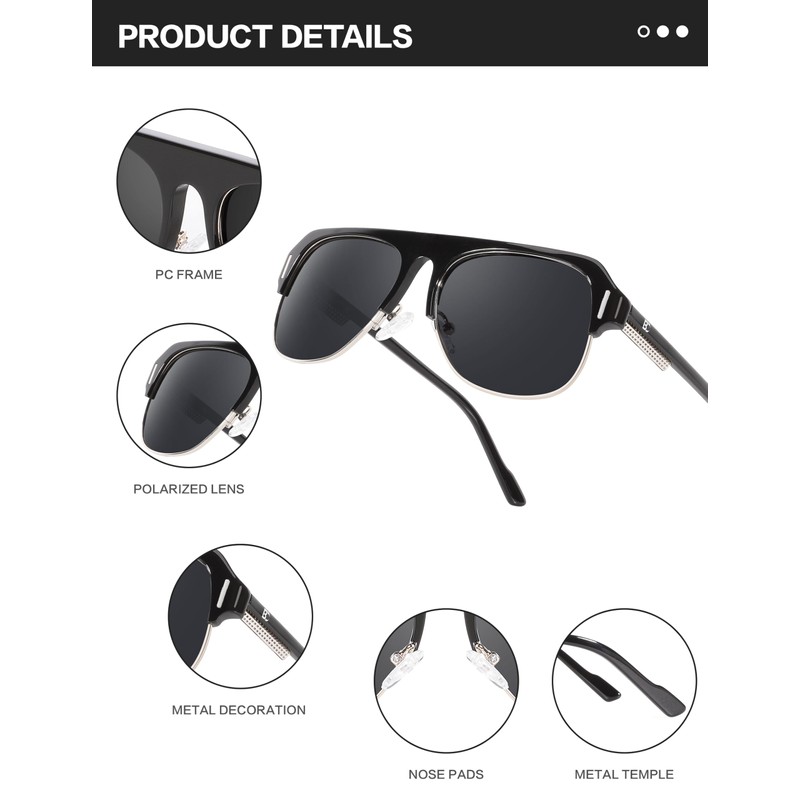 - Hybrid Frame for Style & Durability: Featuring an innovative half-acetate half-metal frame design, our polarized sunglasses men combines the sophistication of acetate with metal's lightweight strength. The upper acetate portion provides timeless style while the lower metal frame ensures lasting durability and comfort.