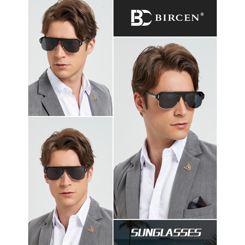 BIRCEN Acetate Polarized Sunglasses for Men: Classic Metal Frame Club Sun Glasses UV Protection for Driving Vacation Golf Black