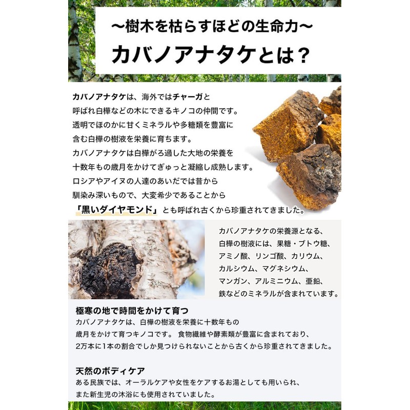 - Birch Anaka Mushroom Tea (Birch Anaka Tea), also known as Chaga Tea, is made from natural birch anatake which contains enzymes, minerals and dietary fibers