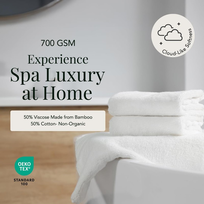 - Birch & Moon Bath Towels – Luxury Spa Towels, Ultra-Soft, Absorbent & Quick-Dry, Set of 4 (Bright White) 50% Viscose Bamboo, 50% Turkish Cotton