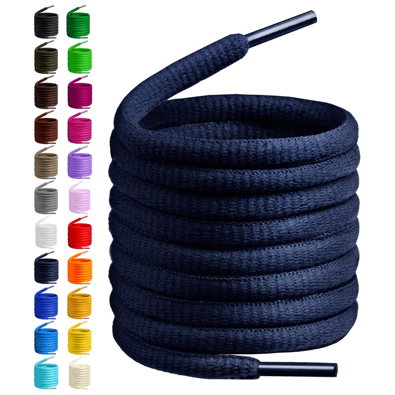 BIRCH's Oval Shoelaces 27 Colors Half Round 1/4" Shoe Laces 4 Different Lengths (56" (142cm) - XL, Navy)