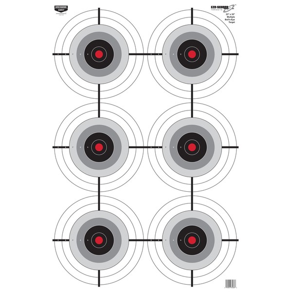 BIRCHWOOD CASEY 23" x 35" Eze-Scorer Multiple Bull's-Eye Shoot-Up Brilliant White Paper Targets for Indoor and Outdoor Use, 100 Targets