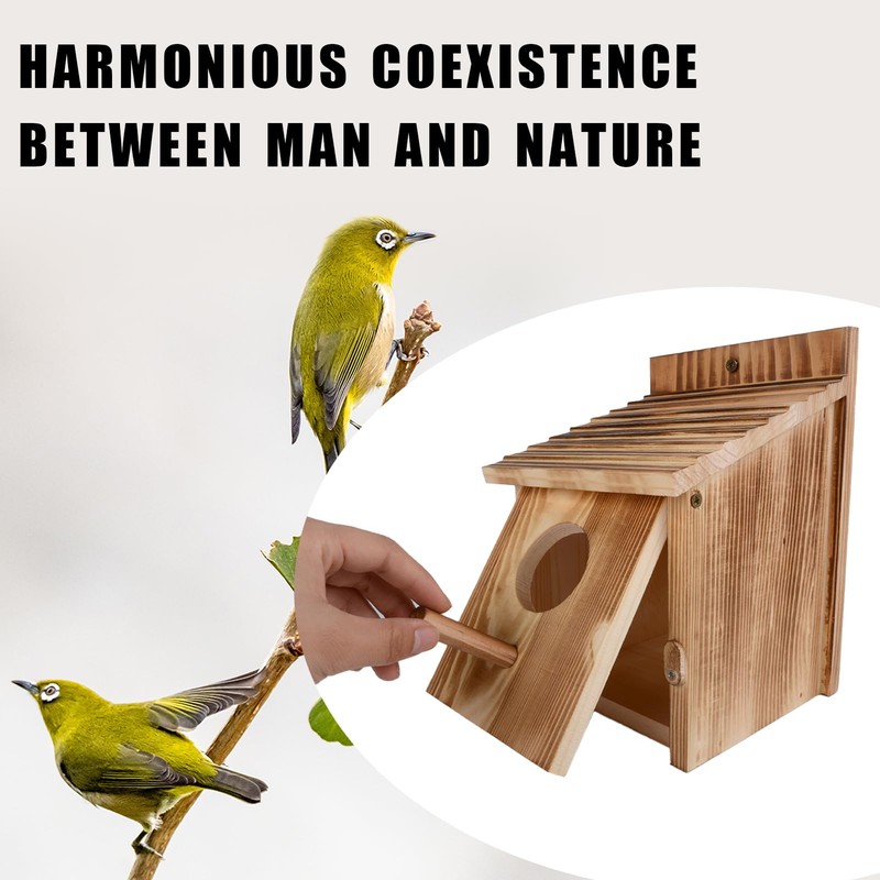 • Versatile Installation Options: This bird box for gardens can be easily hung using nails on sturdy tree branches, walls, fences, or anywhere you wish to enhance your outdoor space, providing a charming habitat for your feathered friends.