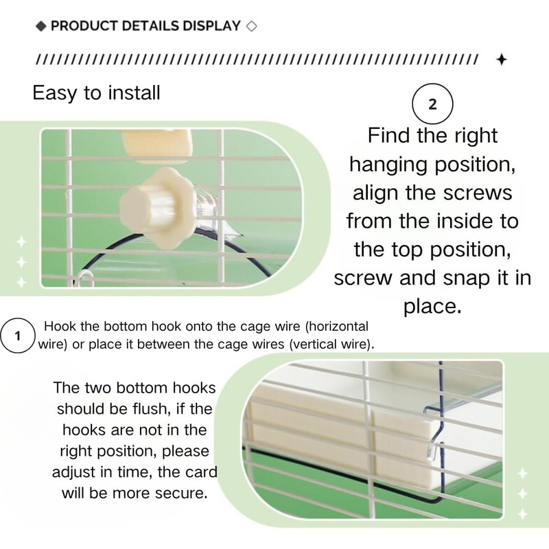 - 【Easy to Use】Super easy to install and works with most bird cages (perfect for cages with a line diameter of 2.2mm). The no-leakage design allows birds to bathe and play without messing the floor.