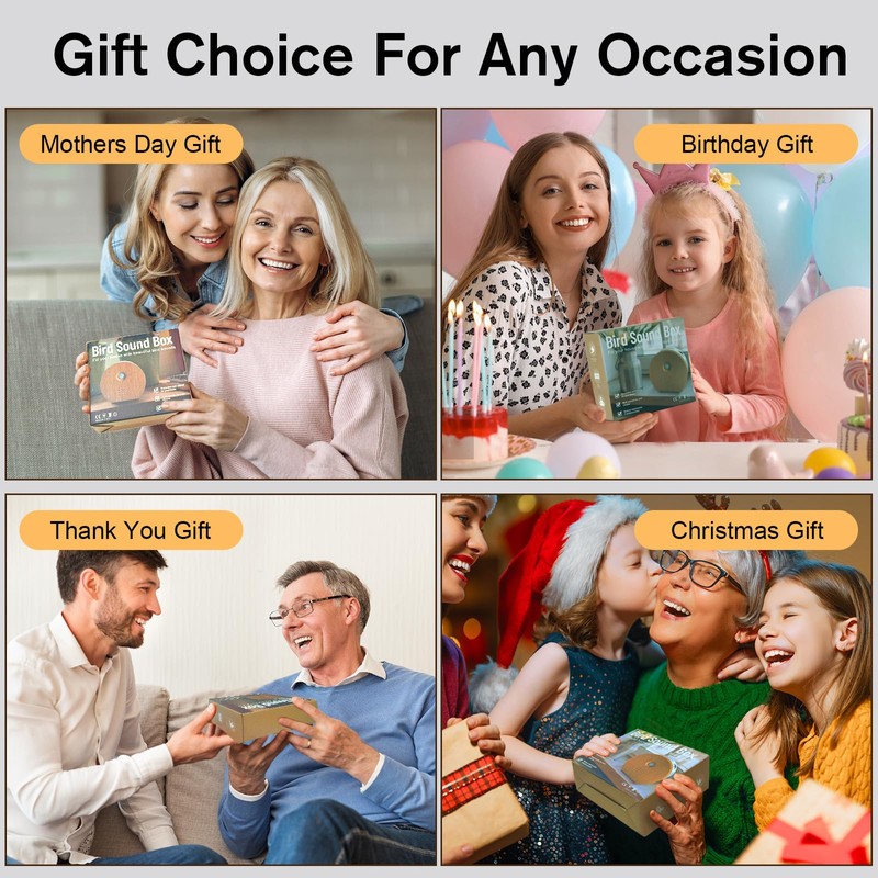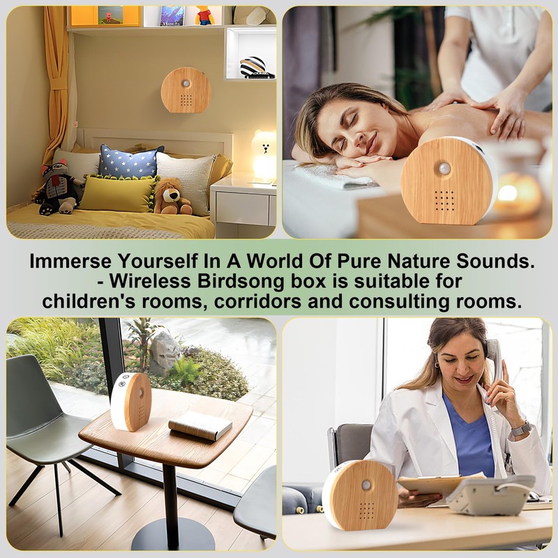 - Perfect gift: get the sounds of bird chirping and sea noise into your home. Relieve stress and improve your sleep with our Sounds of Nature box, which are perfect for calming the mind and creating a relaxed atmosphere. Wherever you are, our birdsong motion detector creates a moment of peace and relaxation, perfect for use in the bedroom, living room, bathroom or hallway. The bird chirping box is an ideal gift for friends and family.