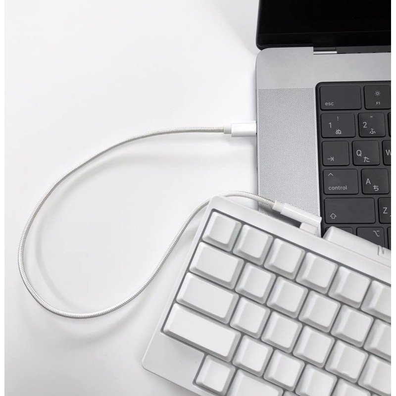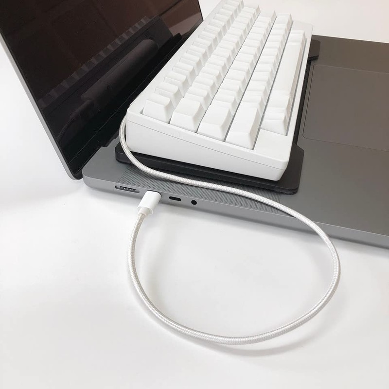 Introducing a new color white USB-C cable that is perfect for HHKB. 4mm diameter braided (40cm) cable for easy handling One side L-type connector does not take up any depth The L-shaped connector is used to prevent it from hitting the LCD screen when using it in an honor style. We have adjusted the HHKB size to 15.7 inches (40 cm) that makes it easy to move when loading or unloading your laptop.