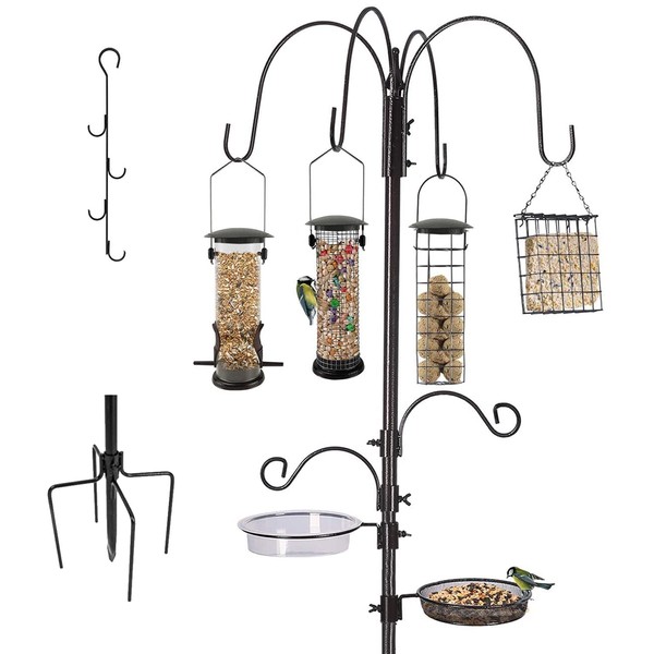 - Spectacular Bird Feeding Station Kit: Wild birds will naturally be attracted to the multi hook bird feeder and water station and you can comfortably enjoy the birds feeding off the station from the comfort of your home! The rustic and vintage look of bird feeder station will enhance your garden landscape and whether you opt to place it in front of the house or the backyard