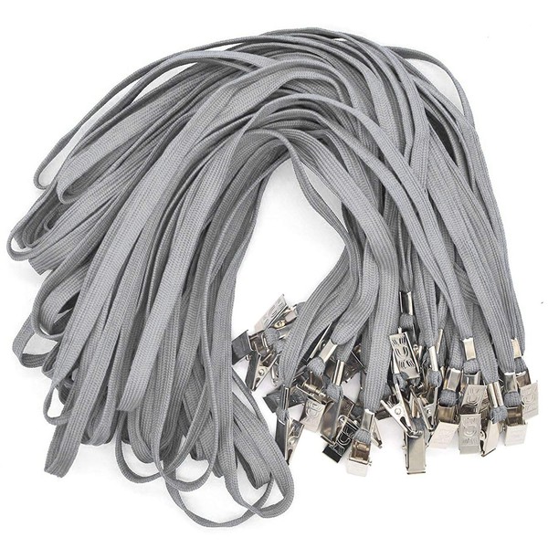 - Bulk Gray lanyard Bulldog Clip width: 3/12" (Shoe String Style)