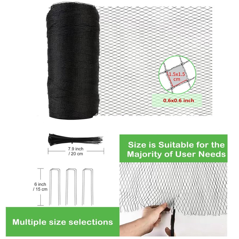 - Easy to Use and Install: Bird netting for garden comes with 6 U-shaped nails and 20 cable ties, you can set up this net on any stable structure or stand.