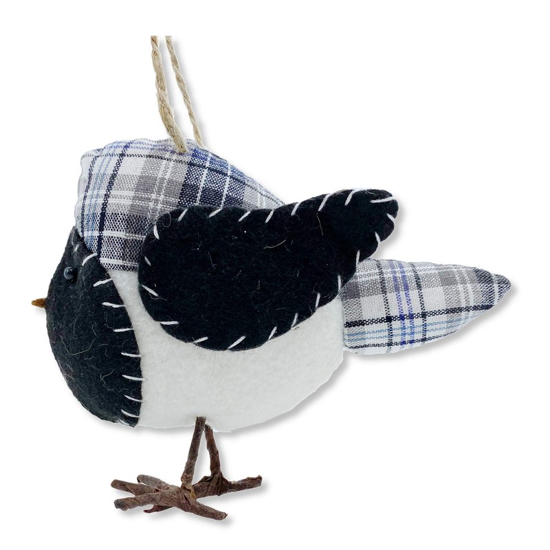 Bird Ornaments - Farmhouse Plaid Christmas Ornaments, Set of 2 Holiday Decorations for Tree, Garland, Tablescape, Wreath