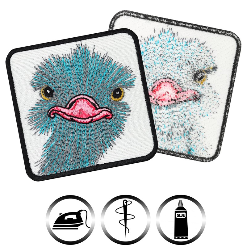 Bird Ostrich Sticker/Patch Embroidered Funny Ostrich Face Patches for Jeans & Bags Bird Ostrich with Funny Look Rhea Emu Ostrich Patch Sew-on/Iron-on 75 x 75 mm