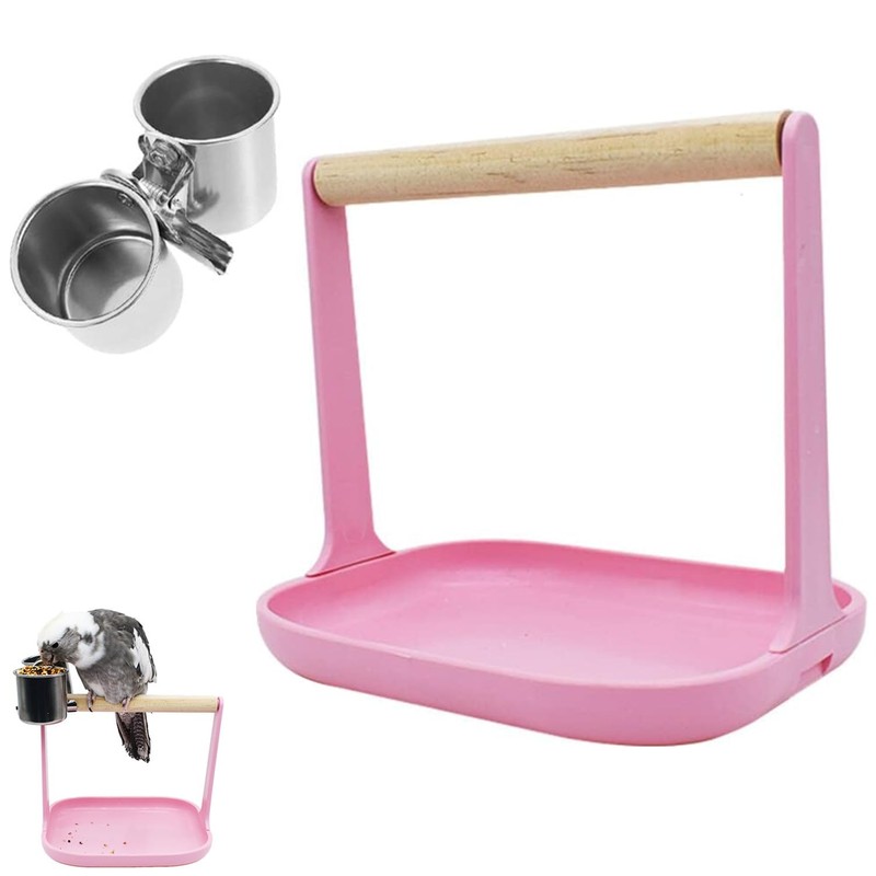 - 【Package includes】1 Set Bird Perch, come with easy-clean removable tray and stainless steel food water cup. 5.66" L x 4.68" W x 6.29" H for small or medium birds, easy to assemble with instruction.